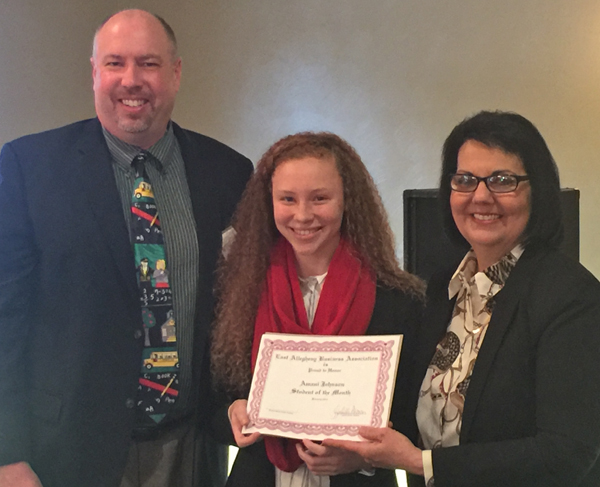 Stephen Bannister, Pro Physical Therapy & Student Lunch Sponsor; Amani Johnson, Student of the Month; Roxanne Eichler, EABA President